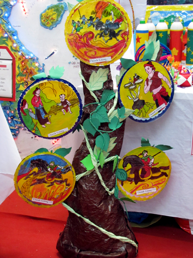 | | Các câu truyện truyền thuyết, cổ tích cũng được các cô thể hiện thông qua những hình vẽ, giúp học sinh dễ học, dễ thuộc và dễ hiểu. | |