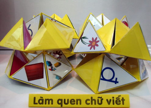 | | Sự sáng tạo của giáo viên không dừng lại ở việc làm đồ chơi cho trẻ mà còn là những dụng cụ giúp trẻ làm quen với chữ viết qua những hình khối. | |