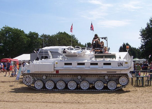 | Chiếc xe tăng FV432 có thể chở 8 người muốn dạo phố London (Anh). Ảnh: Flickr. |
